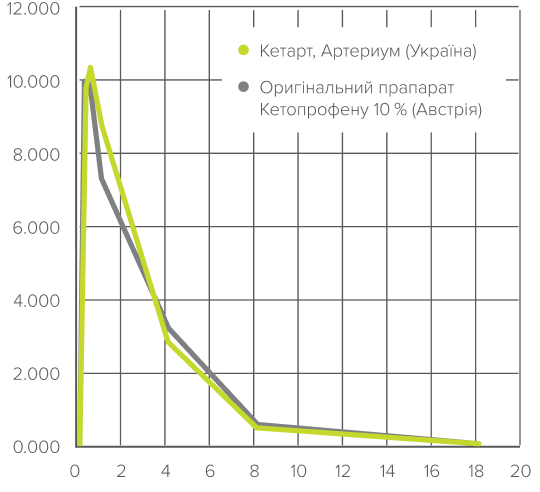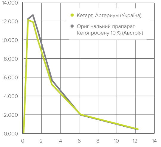 Зміна концентрації кетопрофену в плазмі крові телят протягом часу